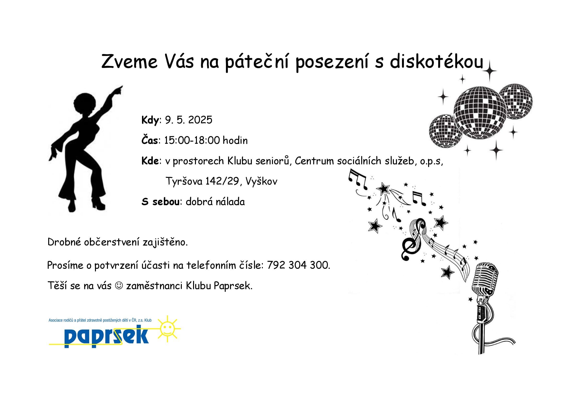 Přihlášky na tel.čísle nebo email: 792 304 300, lenka.zampachova@paprsek-vyskov.cz